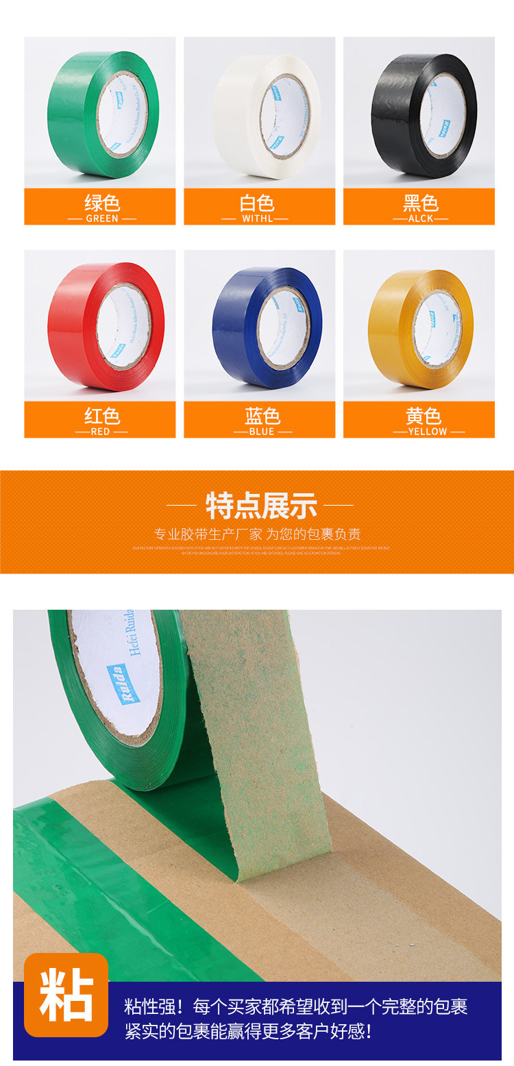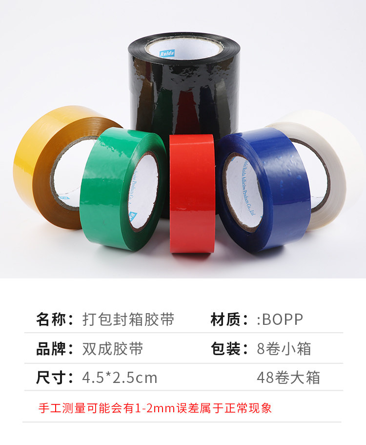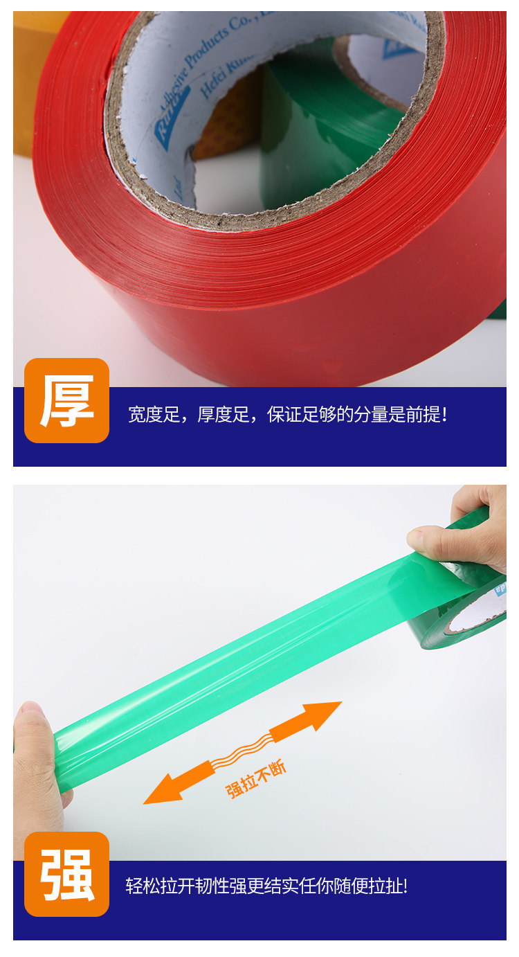 促销优惠:宽度/厚度4.5cm/2.5cm(含纸芯)手工测量误差在1-2mm。高粘度,不易断!韧性强!是您包装封箱的标配选择。