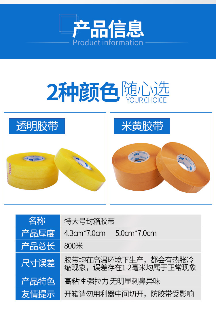 机用大卷透明胶带封箱胶带打包胶布胶纸条机用胶带透明胶批发订制800米