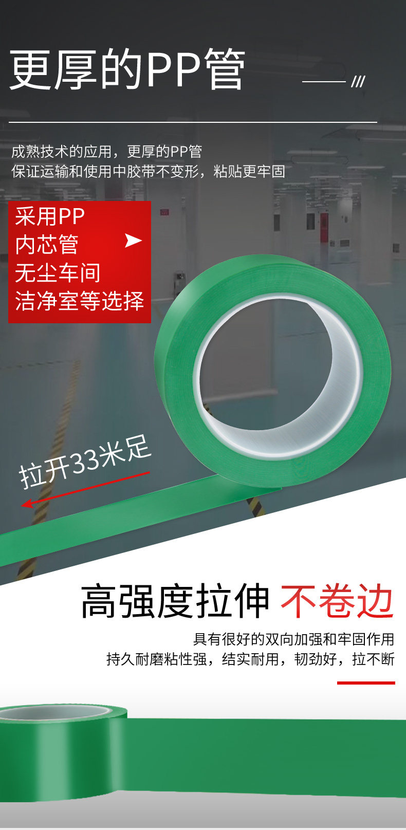 警示胶带绿色安全线地板胶带PVC胶布定位警戒无痕贴彩色无尘车间区域划线划分5S地面标识胶带装修地面保护膜