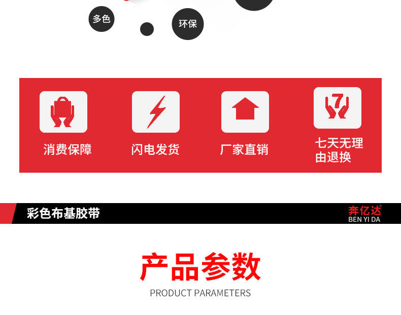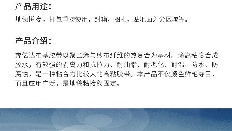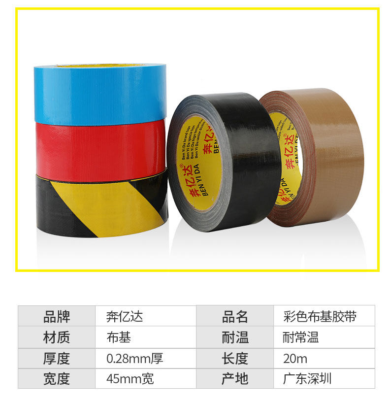 奔亿达20米布基地毯胶带强力彩色胶带单面...